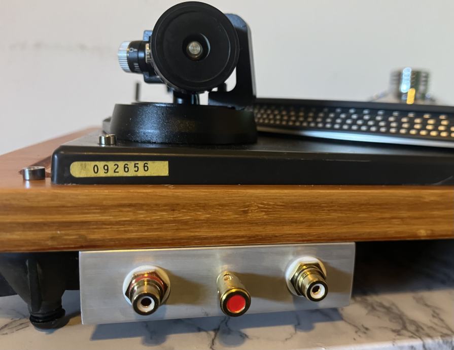 Gramofon je kompletno servisiran, zamijenjen remen, ugradjeni visokokvalitetni RCA konektori i GND konektor na kuciste (izmjenjiv kabel), zice iz rucke direktno spojene na konektore, sasija umrtvljena specijalnim akustickim dvoslojnim bitumenskim plocama. Unikat.
