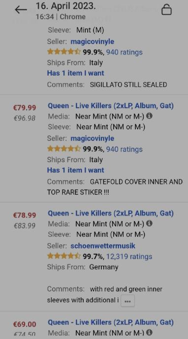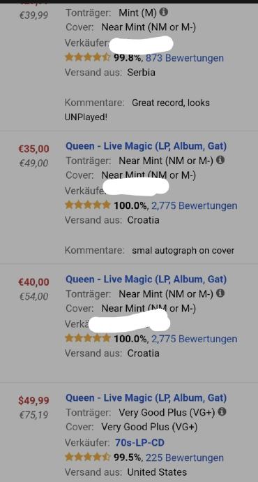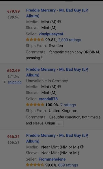 Njemačka izdanja najskuplji su mister bad Guy i live queen sa dva lp..Flash Gordon Soundtrack po 80eur.stanje kolekcionarsko..ostalih 3po 50eur.