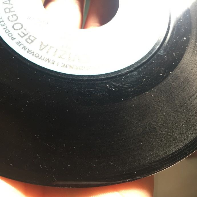 Pogledajte priložene fotografije oglašenog primjerka i YouTube video, koji sadrži iste fotografije veće razlučivosti i autentičnu snimku zvuka s početka prve strane, napravljenu amaterskom opremom. Ploča je u potpunosti poslušana, svira bez preskoka igle i daje zvuk otprilike onakav kakav je u spomenutoj snimci, ovisno o kvaliteti opreme kojom se zvuk reproducira. Glede ogrebotina, sve su neupadljive, plitke i ne utječu na zvuk. Svo tiho pucketanje, šum i umjerena distorzija koji se čuju u snimci uzrokovani su uzdužnim oštećenjima u brazdama, koja nisu upadljiva. Ostalo o stanju oglašenog predmeta govore fotografije i video.