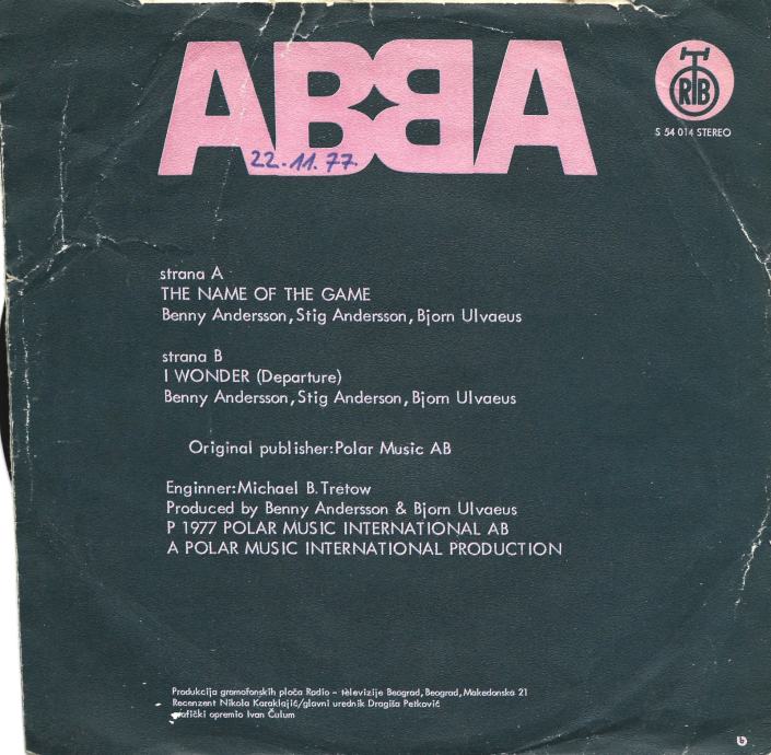 * ABBA * – THE NAME OF THE GAME / I WONDER