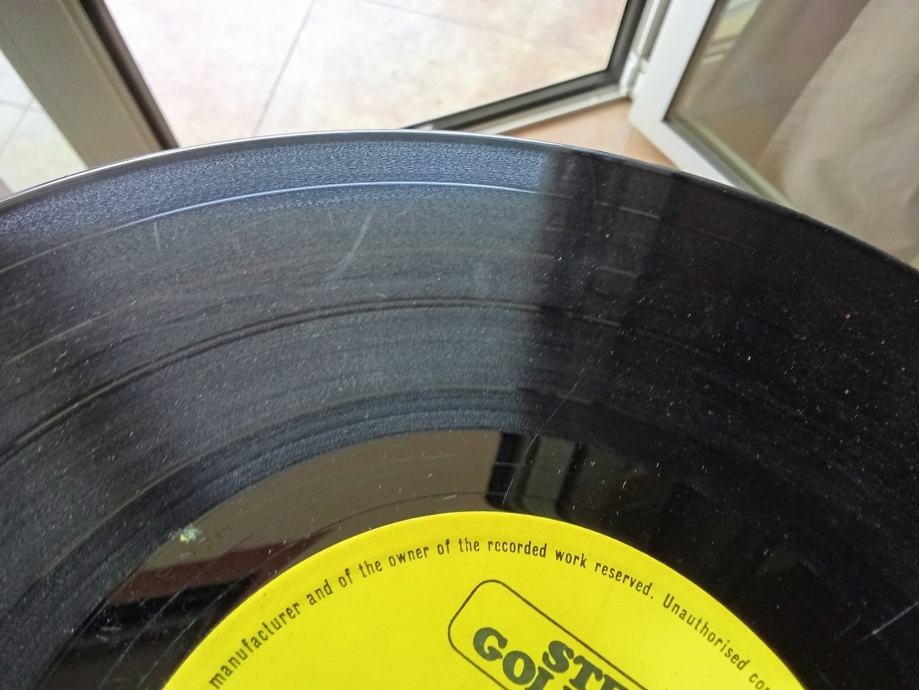Pogledajte priložene fotografije oglašenog primjerka i YouTube video, koji sadrži iste fotografije veće razlučivosti i autentičnu snimku zvuka na početku prve strane ploče, napravljenu amaterskom opremom. Ploča je u potpunosti slušana neposredno prije oglašavanja, svira bez preskoka igle i stalno daje zvuk otprilike onakav kakav je u spomenutoj snimci, ovisno o kvaliteti opreme kojom se zvuk reproducira. Glede ogrebotina, postoje mnoge, neke su upadljive, ali nisu jako duboke i ne izazivaju glasno pucketanje. Uzdužna oštećenja brazdi su mjestimično vidljiva, uzrokuju tiho pucketanje i zanemarivu distorziju zvuka. Rubovi omota nisu probijeni.