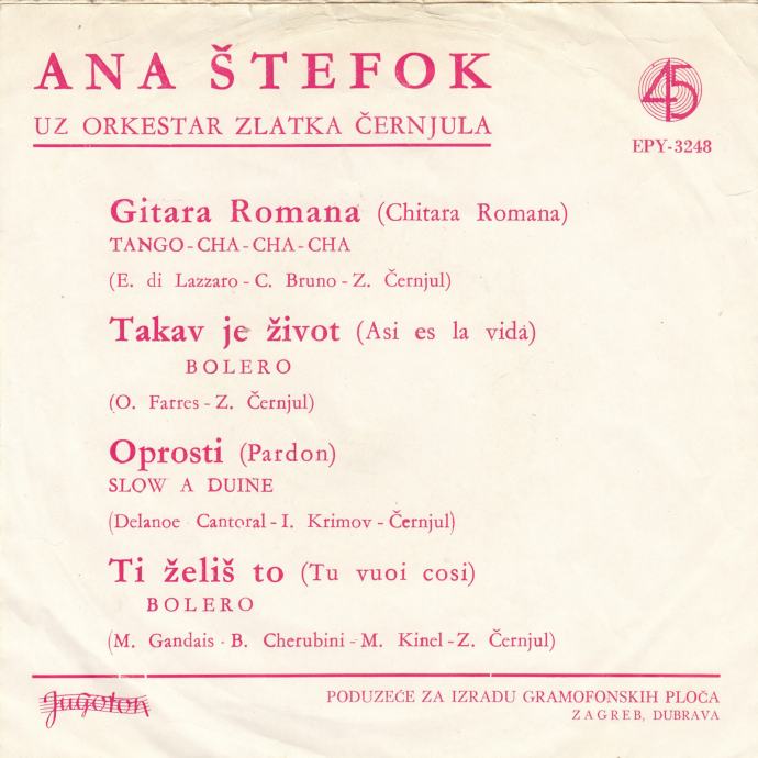 ANA ŠTEFOK GITARA ROMANA SINGL GRAMOFONSKA PLOČA