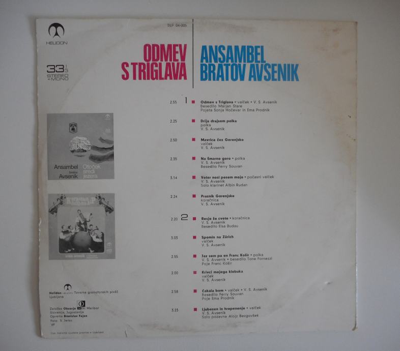 ANSAMBEL BRATOV AVSENIK ODMEV S TRIGLAVA LP GRAMOFONSKA PLOČA