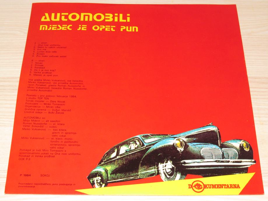 Prodam kao novi (near mint) album grupe Avtomobili "Mjesec je opet pun". Prodam za 28,00 € (plus poštarina).