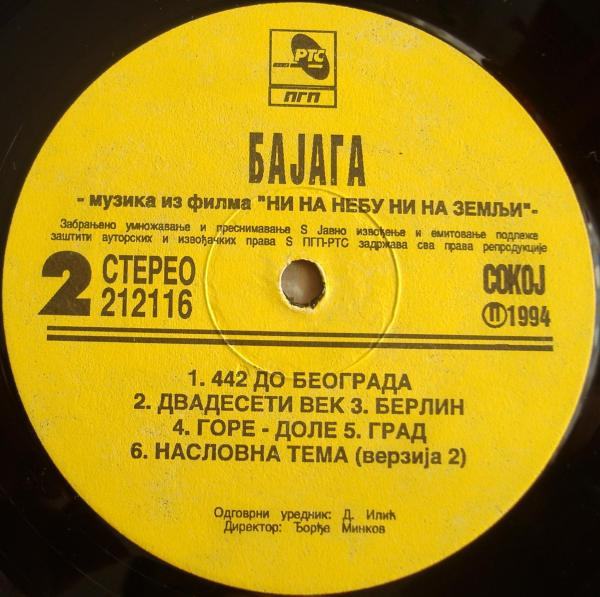 BAJAGA & INSTRUKTORI - NI NA NEBU NI NA ZEMLJI, ULTRA RIJETKA PLOČA