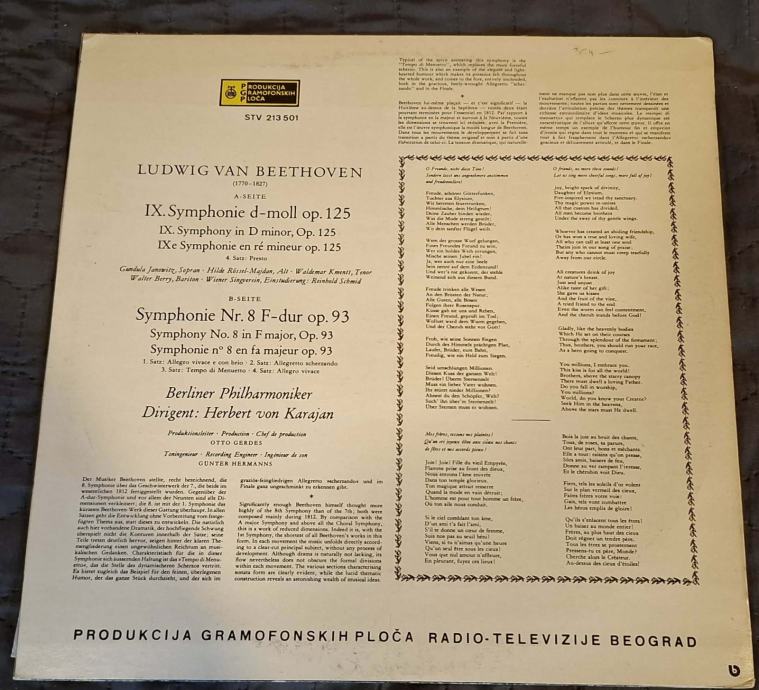 Beethoven, Berliner Philharmoniker, Herbert von Karajan – Symphonien 8 & 9 (Finale) PGP RTB – STV 213501