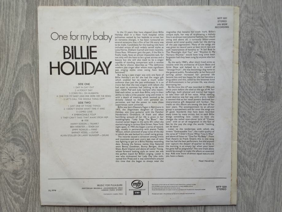 Billie Holiday - One For My Baby, UK izdanje (1971.)