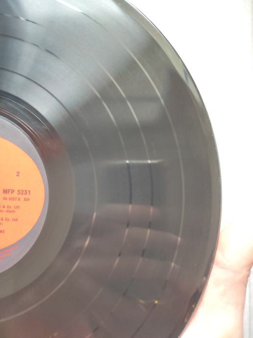Ploča vizualno: Labeli su jako čisti i uredni, bez ikakvih tragova spindle weara i izgledaju kao novi. Ploča ima fantastičan i djeluje jako čisto i uredno bez ikakvih friževa ili frižića. Tek temeljitim pregledom na direktnom svjetlu sam uočio samo nešto onih najsitnijih crtica koje se u uvjetima normalne osvijetljenosti ni ne vide već samo kao refleksije na direktnom svjetlu te ne utječu na samu reprodukciju. Vizualno ploča izgleda Ex očuvana.