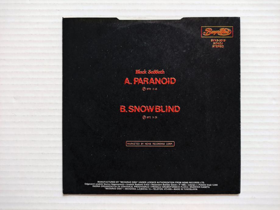 Black Sabbath - Paranoid / Snowblind (7", Single)