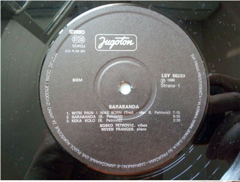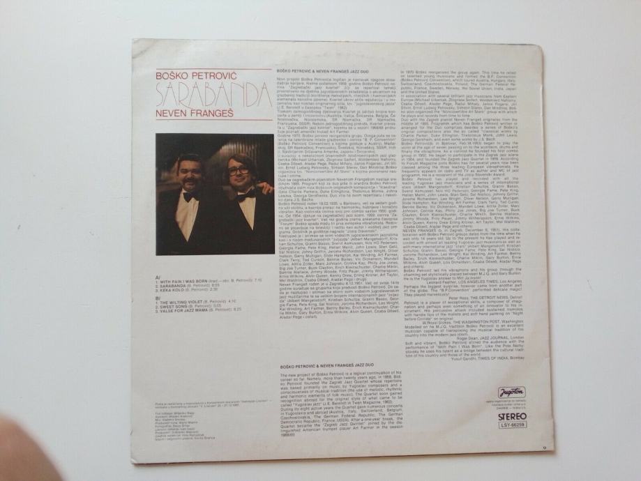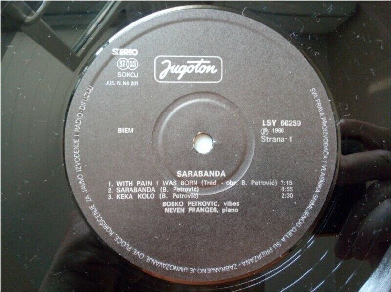 Boško Petrović & Neven Frangeš "Sarabanda", gramofonska ploča