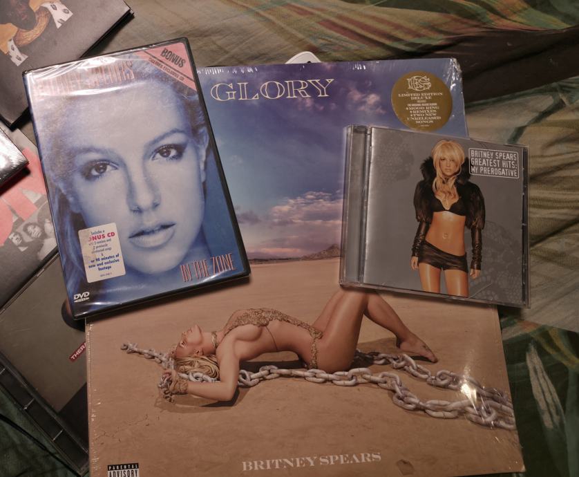 Prodajem potpuno nove glazbene proizvode Britney Spears: album "Glory", kompilaciju najvećih hitova "My Perogative The Best Of" i Live DVD. Ova kolekcija uključuje tri različita izdanja pop princeze u savršenom stanju, idealna za prave obožavatelje.