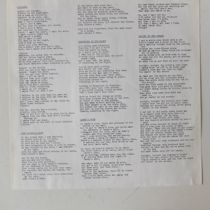 Bruce Springsteen – Darkness On The Edge Of Town, Holland Press
