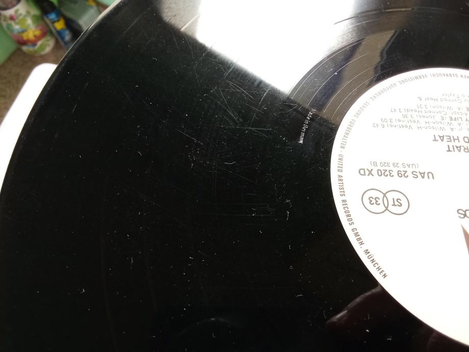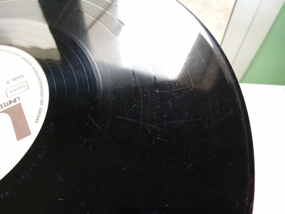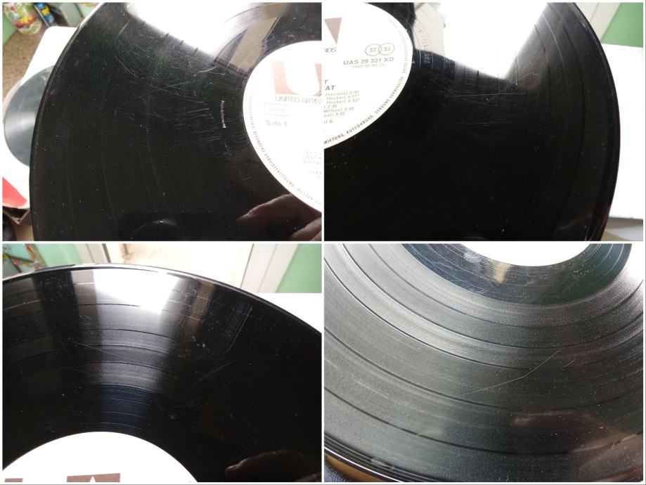 Pogledajte priložene fotografije oglašenog primjerka i YouTube video, koji sadrži iste fotografije veće razlučivosti i autentičnu snimku zvuka s početka prve strane, napravljenu amaterskom opremom. Ploča je u potpunosti slušana neposredno prije oglašavanja, svira bez preskoka igle i stalno daje zvuk otprilike onakav kakav je u spomenutoj snimci, ovisno o kvaliteti opreme kojom se zvuk reproducira. Glede ogrebotina, postoje mnoge, neke su upadljive, ali sve su plitke i ne izazivaju glasno pucketanje. Uzdužna oštećenja brazdi su mjestimično vidljiva, uzrokuju tiho pucketanje i jedva primjetnu distorziju zvuka. Rubovi omota nisu probijeni.