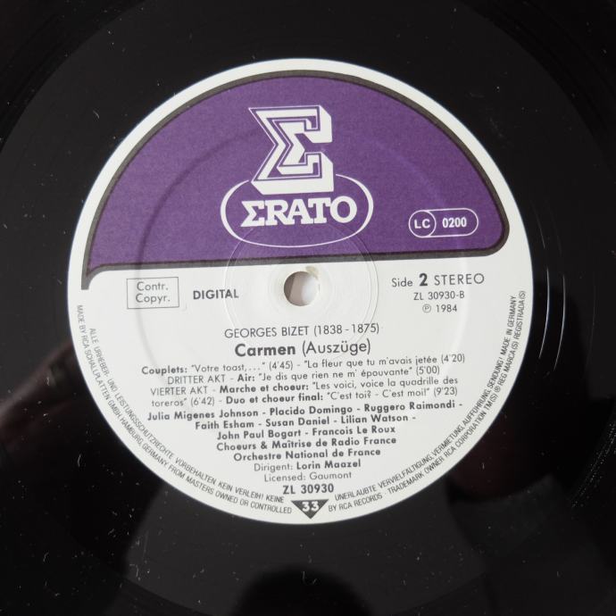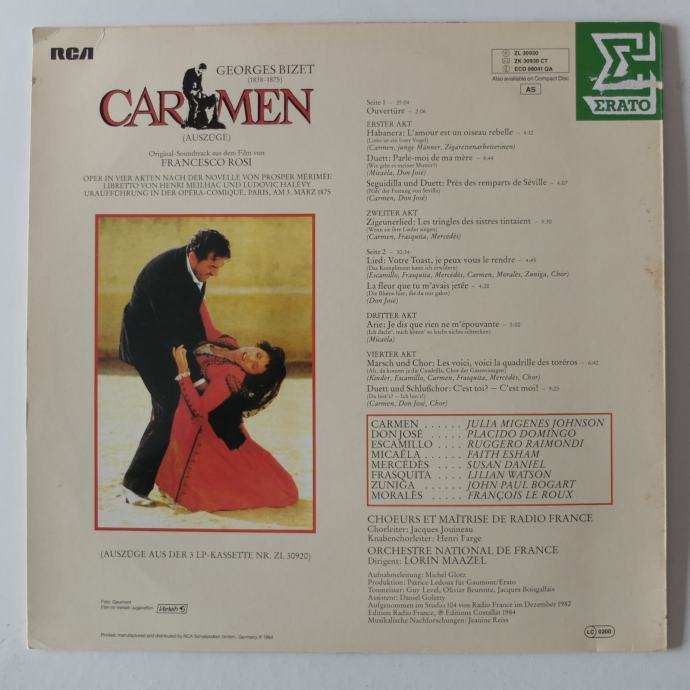 Prodajem gramofonsku LP ploču Georges Bizet / Julia Migenes Johnson / Placido Domingo / Ruggero Raimondi / Faith Esham / Lorin Maazel / Orchestre National De France / Chœur Et Maîtrise De Radio France – Carmen (Auszüge), Original Soundtrack