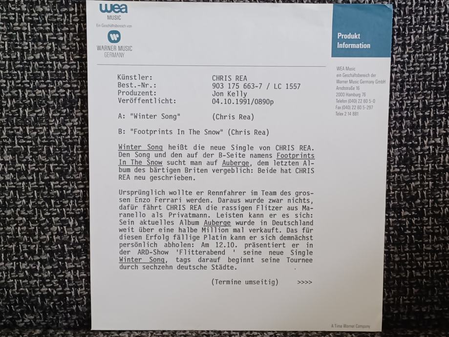 CHRIS REA: Winter Song/Footprints in the Snow - Set Me Free, singlica
