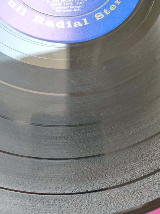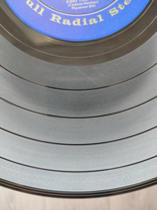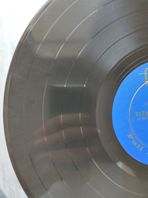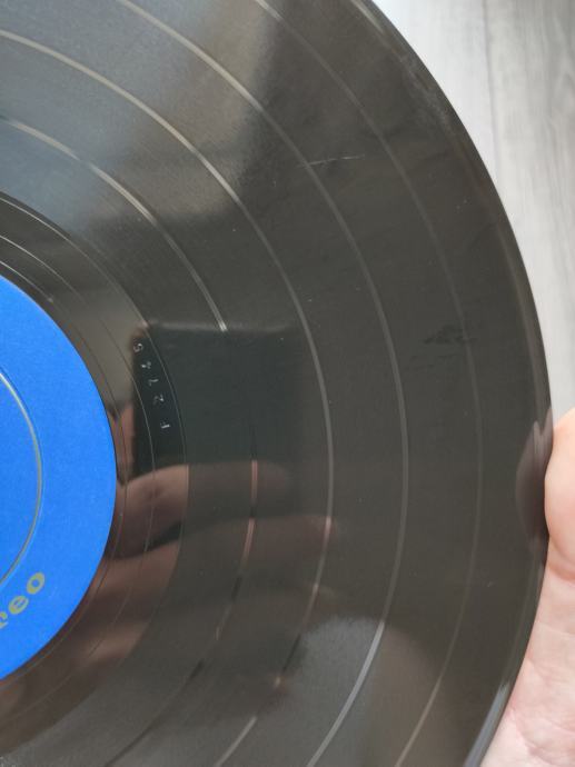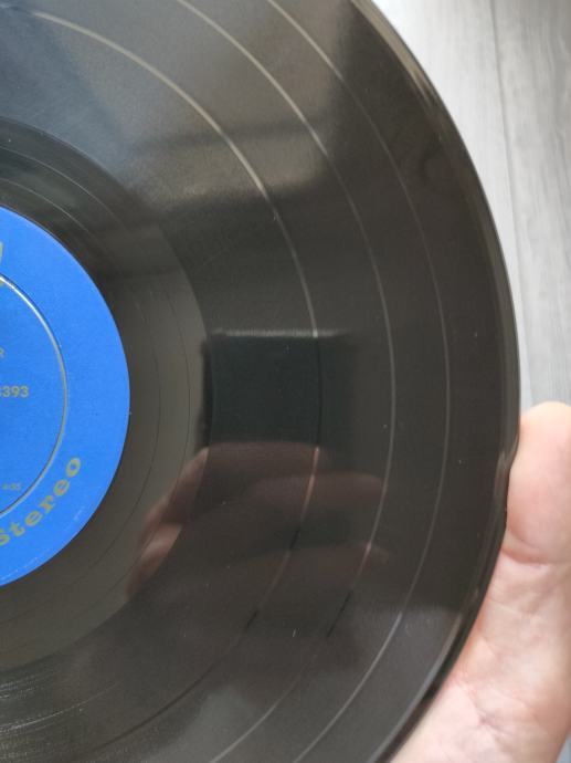 Ploča vizualno: Labeli su jako čisti i uredni, bez ikakvih tragova spindle weara. Ploča ima odličan sjaj i djeluje jako čisto i uredno bez nekih većih friževa koji bi se mogli opipati pod prstom. Tek temeljitim pregledom sam uočio jedan sitan površinski frižić na A strani, dva na B strani (slike 11,17 i 18) i nešto onih najsitnijih crtica koje se u uvjetima normalne osvijetljenosti ni ne vide već samo kao refleksije na direktnom svjetlu. Vizualno ploča izgleda Vg+ očuvana.