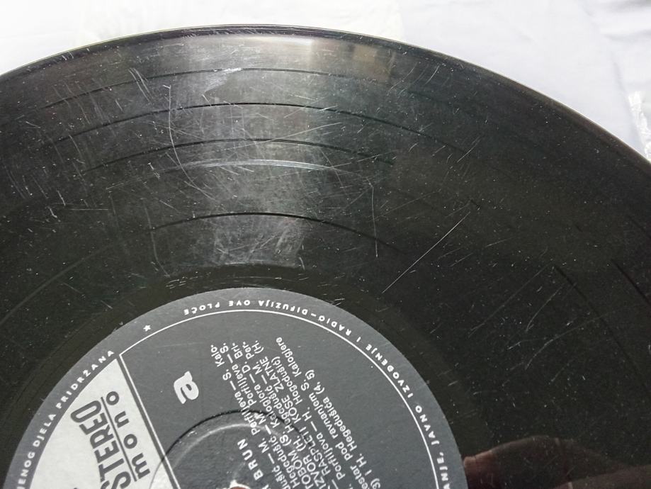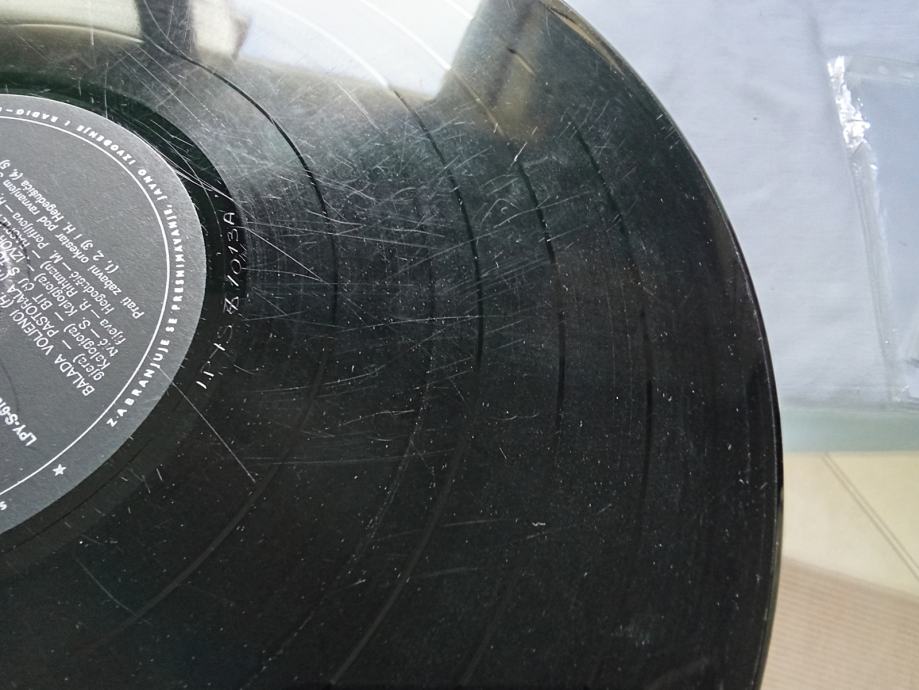 Pogledajte priložene fotografije oglašenog primjerka i YouTube video, koji sadrži iste fotografije veće razlučivosti i autentičnu snimku zvuka na početku prve strane ploče, napravljenu amaterskom opremom. Ploča je u potpunosti slušana neposredno prije oglašavanja, svira bez preskoka igle i stalno daje zvuk otprilike onakav kakav je u spomenutoj snimci, ovisno o kvaliteti opreme kojom se zvuk reproducira. Glede ogrebotina, postoje mnoge, neke su upadljive, ali nisu jako duboke i ne izazivaju glasno pucketanje. Uzdužna oštećenja brazdi su mjestimično vidljiva, uzrokuju vrlo tiho pucketanje i zanemarivu distorziju zvuka. Rubovi omota nisu ni probijeni niti rascijepljeni. Cijeli oglašeni predmet smrdi po nevidljivoj plijesni, kupac ga dobiva u omotu za ploče sa zatvaračem.
