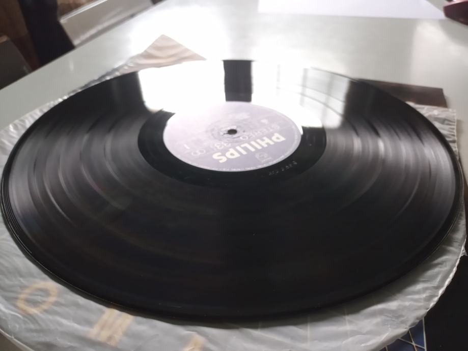 Pogledajte priloženi YouTube video, koji sadrži fotografije oglašenog primjerka i autentičnu snimku zvuka s početka prve strane, napravljenu amaterskom opremom. Ploča je u potpunosti poslušana, svira bez preskoka igle i daje zvuk otprilike onakav kakav je u spomenutoj snimci, ovisno o kvaliteti opreme kojom se zvuk reproducira. Na njoj postoje samo jedva primjetne ogrebotine, potpuno beznačajne za zvuk i vidljive samo pod nekim kutom promatranja. Oštećenja brazdi nisu upadljiva, pucketanje i distorzija zvuka su zanemarivi. Ploča je umjereno valovita, što se primjeti samo dok se vrti na gramofonu. Rubovi omota nisu probijeni. Ostalo o stanju oglašenog predmeta govore fotografije i video. Predlažem da video otvorite na YouTubeu, uz najveću razlučivost slike.