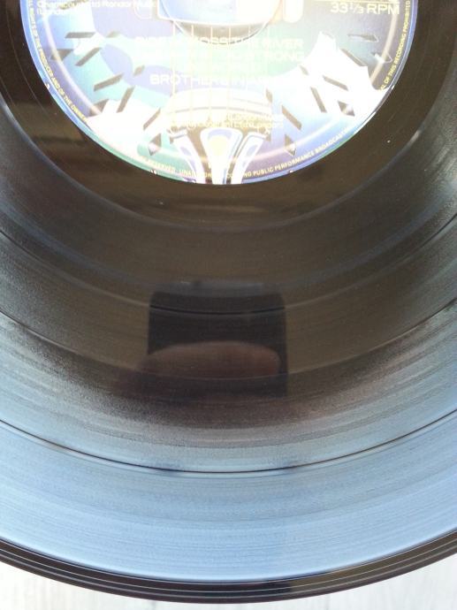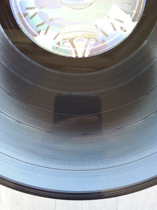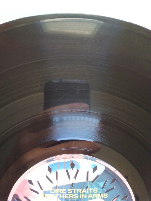 Ploča vizualno: Labeli su jako čisti, uredni i bez ikakvih tragova spindle weara. Ploča ima fantastičan sjaj i djeluje jako čisto i uredno bez nekih dubljih friževa. Temeljitim pregledom sam uočio jedan sitan površinski frižić na B strani (slika 17) koji ne utječe na samu reprodukciju i više onih najsitnijih crtica nastalih od vađenja ploče iz papirnatog innera koje se u uvjetima normalne osvijetljenosti ni ne vide već samo kao refleksije na direktnom svjetlu. Vizualno ploča izgleda Vg+ očuvana.