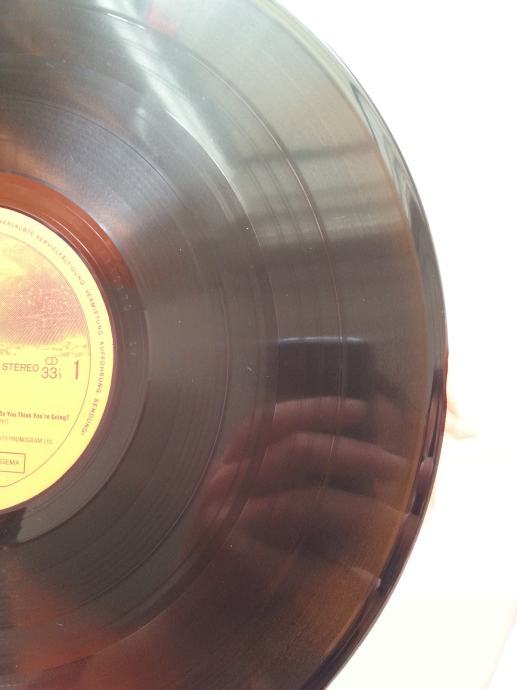 Ploča vizualno: Labeli su jako čisti, uredni i bez ikakvih tragova spindle weara i izgledaju kao novi. Ploča ima fantastičan sjaj i djeluje jako čisto i uredno bez nekih dubljih friževa. Temeljitim pregledom sam uočio tek po jedan jedva vidljiv površinski frižić na svakoj strani (slika 12 i 18) nekoliko onih najsitnijih crtica nastalih od vađenja ploče iz papirnatog innera koje se u uvjetima normalne osvijetljenosti ni ne vide već samo kao refleksije na direktnom svjetlu. Vizualno ploča izgleda Ex ili Nm očuvana.
