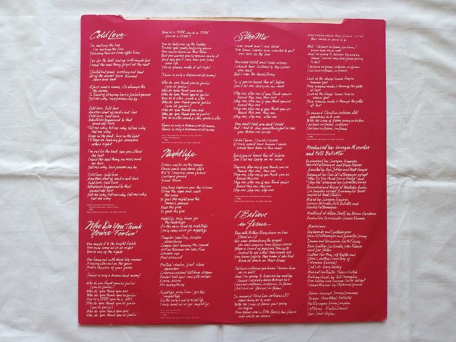 Pogledajte priložene fotografije oglašenog primjerka i YouTube video, koji sadrži iste fotografije veće razlučivosti i autentičnu snimku zvuka s početka prve strane, napravljenu amaterskom opremom. Ploča je u potpunosti poslušana, svira bez preskoka igle i daje zvuk otprilike onakav kakav je u spomenutoj snimci, ovisno o kvaliteti opreme kojom se zvuk reproducira. Glede ogrebotina, na njoj postoje samo one plitke, nekoliko upadljivih, dok su ostale nastale trenjem ploče uz finu prašinu u omotu, vidljive samo pod nekim kutom promatranja, sve bezutjecajne na zvuk. Uzdužna oštećenja brazdi nisu vidljiva, šum i pucketanje su tihi, a distorzija zanemariva. Rubovi omota nisu ni probijeni niti rascijepljeni. Ostalo o stanju oglašenog predmeta govore fotografije i video.