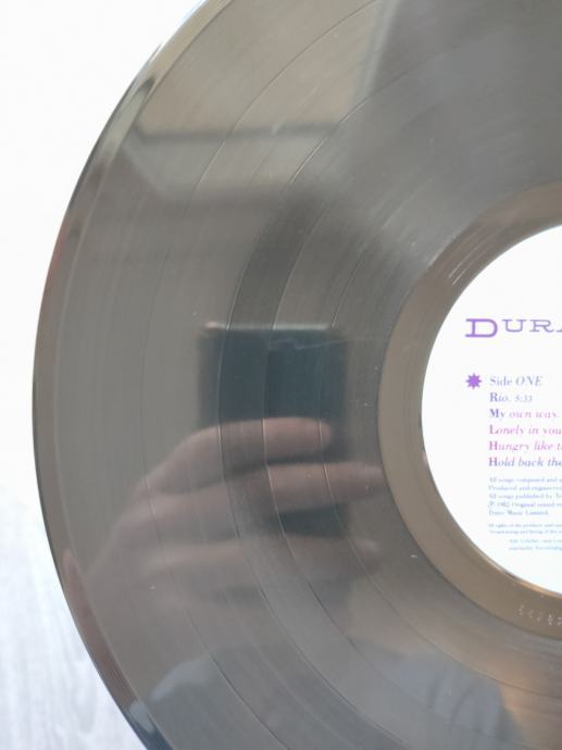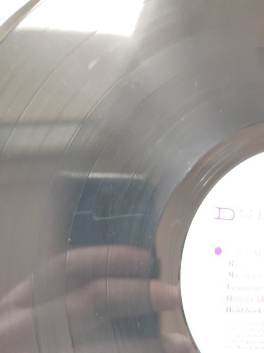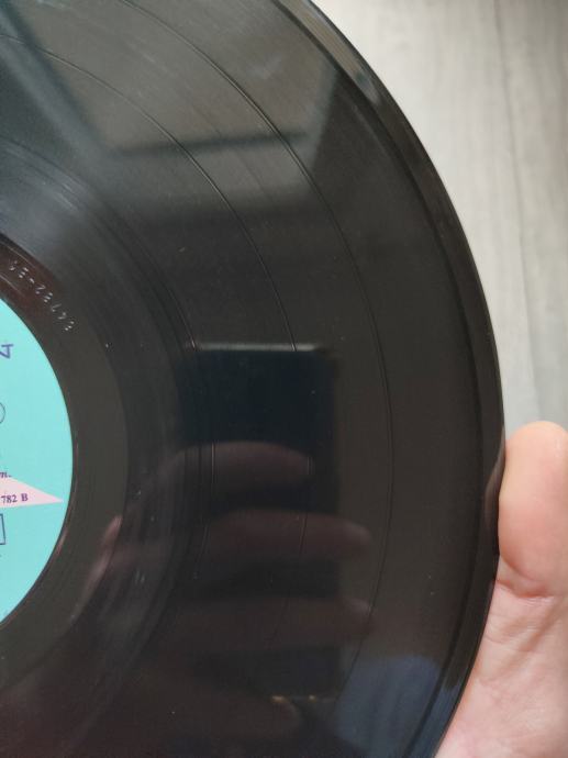 Ploča vizualno: Labeli su jako čisti, uredni i bez ikakvih tragova spindle weara i izgledaju kao novi. Ploča ima fantastičan sjaj i djeluje jako čisto i uredno bez nekih dubljih friževa. Temeljitim pregledom sam uočio tek jedan sitan površinski frižić na A strani (slika 13) koji ne utječe na samu reprodukciju i nešto malo onih najsitnijih crtica nastalih od vađenja ploče iz papirnatog innera koje se u uvjetima normalne osvijetljenosti ni ne vide već samo kao refleksije na direktnom svjetlu. Vizualno ploča izgleda Ex očuvana.