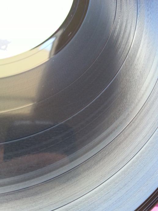 Ploča vizualno: Labeli su jako čisti i uredni, bez ikakvih tragova spindle weara i izgledaju kao novi.. Ploča ima sjaj nove i djeluje jako čisto i uredno bez ikakvih dubljih friževa. Tek temeljitim pregledom na jakom svjetlu sam uočio jedan jedva vidljiv površinski frižić na A strani (slika 12) koji se ne može opipati pod prstom te ne utječe na samu reprodukciju i nešto onih najsitnijih crtica nastalih od vađenja iz papirnatog innera koje se u uvjetima normalne osvijetljenosti ni ne vide već samo kao refleksije na direktnom svjetlu. Vizualno ploča izgleda Ex očuvana.