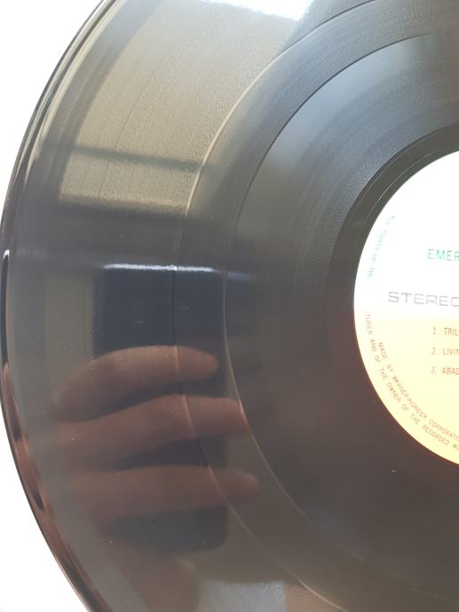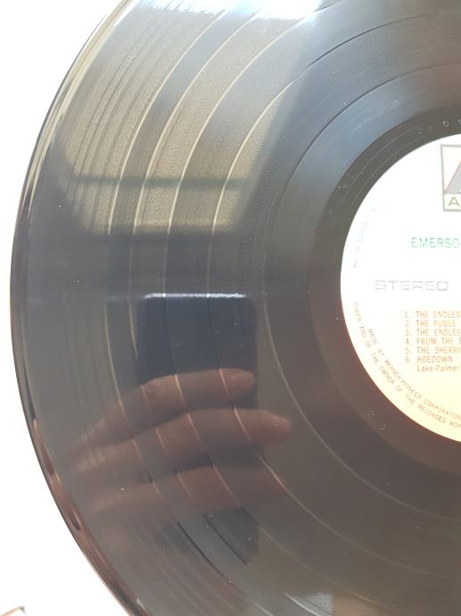 Ploča vizualno: Labeli su jako čisti i uredni, bez ikakvih tragova spindle weara i izgledaju kao novi. Ploča ima sjaj nove i djeluje jako čisto i uredno bez ikakvih većih friževa ili sitnijih frižića. Također, temeljitim pregledom na direktnom svjetlu nisam uočio da ploča ima ikakvih crtica . Vizualno ploča izgleda doslovno kao nova, Nm.