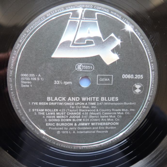 Prodajem gramofonsku LP ploču Eric Burdon & Jimmy Witherspoon – Black & White Blues