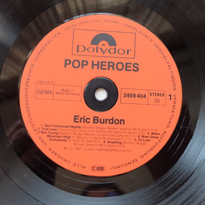 Prodajem gramofonsku LP ploču, Eric Burdon – Pop Heroes
