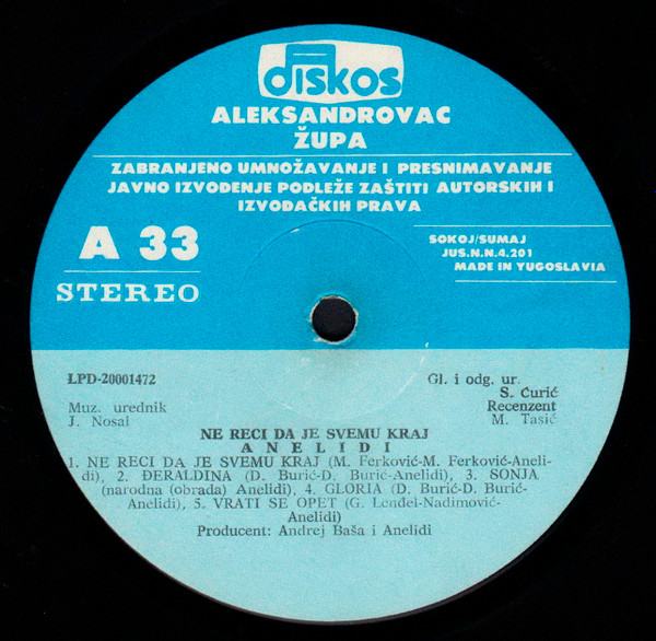 Anelidi – Ne Reci Da Je Svemu Kraj LP Ploča
