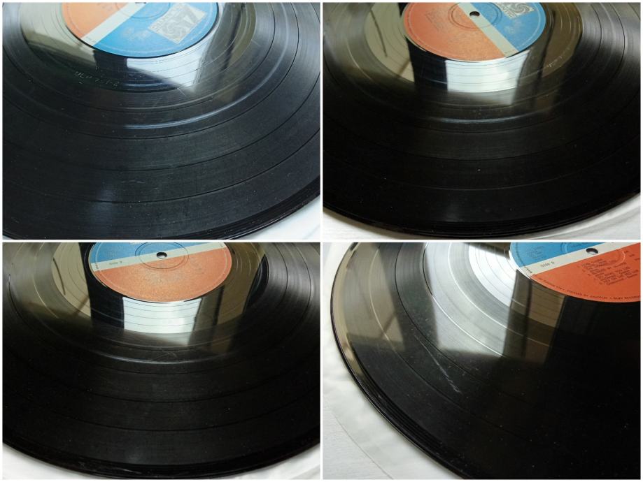 Pogledajte priložene fotografije oglašenog primjerka i YouTube video, koji sadrži iste fotografije veće razlučivosti i autentičnu snimku zvuka na početku prve strane ploče, napravljenu amaterskom opremom. Ploča je u potpunosti slušana neposredno prije oglašavanja, svira bez preskoka igle i stalno daje zvuk otprilike onakav kakav je u spomenutoj snimci, ovisno o kvaliteti opreme kojom se zvuk reproducira. Glede ogrebotina, postoje mnoge, neke su upadljive, ali sve su plitke i ne izazivaju značajno pucketanje. Uzdužna oštećenja brazdi su mjestimično vidljiva, nisu upadljiva, uzrokuju vrlo tiho pucketanje i zanemarivu distorziju zvuka. Rubovi omota nisu ni probijeni niti rascijepljeni.