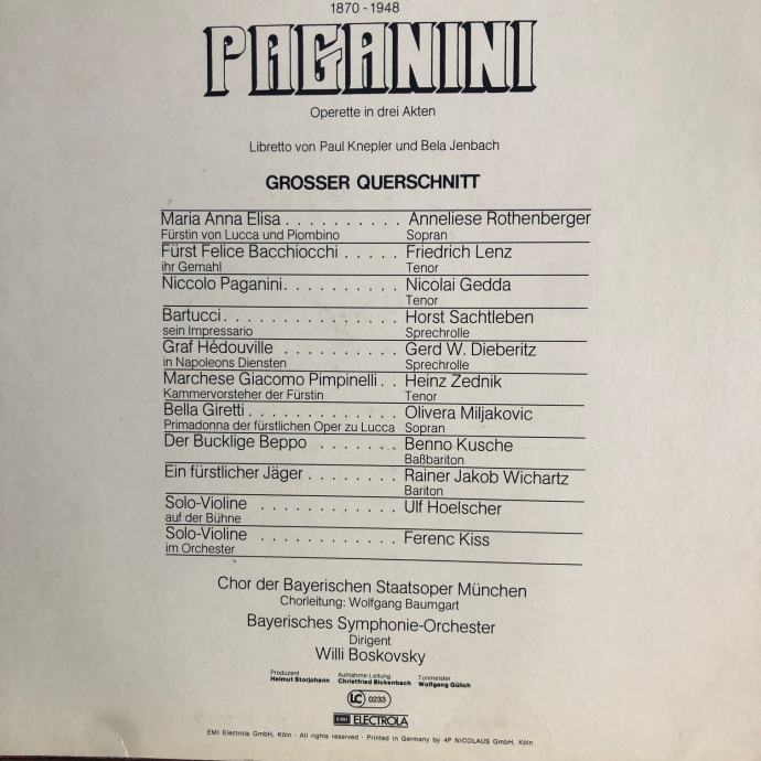 FRANZ LEHAR: PAGANINI: Opereta