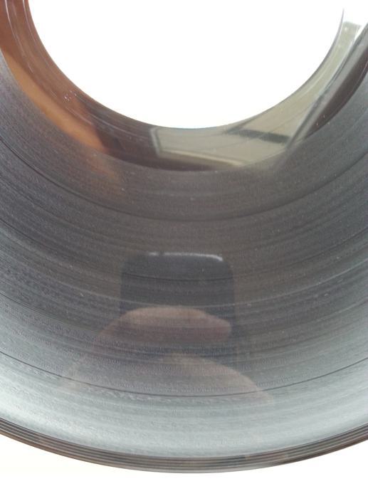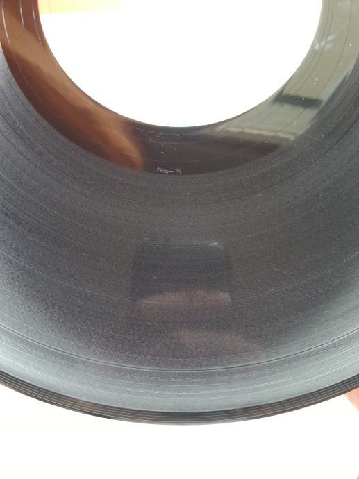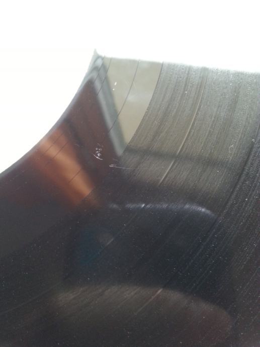 Ploča vizualno: Labeli su jako čisti i uredni, bez ikakvih tragova spindle weara i izgledaju kao novi. Ploča ima sjaj nove i djeluje čisto i uredno bez ikakvih dubljih friževa. Tek temeljitim pregledom sam uočio jedan jedva vidljiv frižić (slika 12) i nekoliko onih crtica koje se u uvjetima normalne osvijetljenosti ni ne vide već samo kao refleksija na direktnom svjetlu te ne utječu na samu reprodukciju. Vizualno ploča izgleda Nm očuvana.
