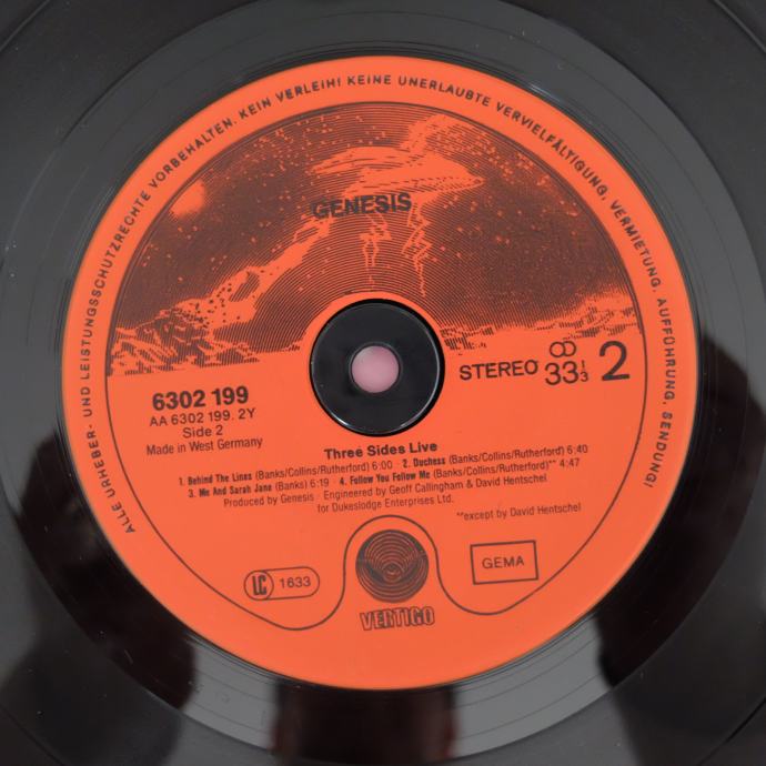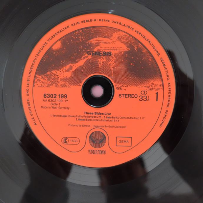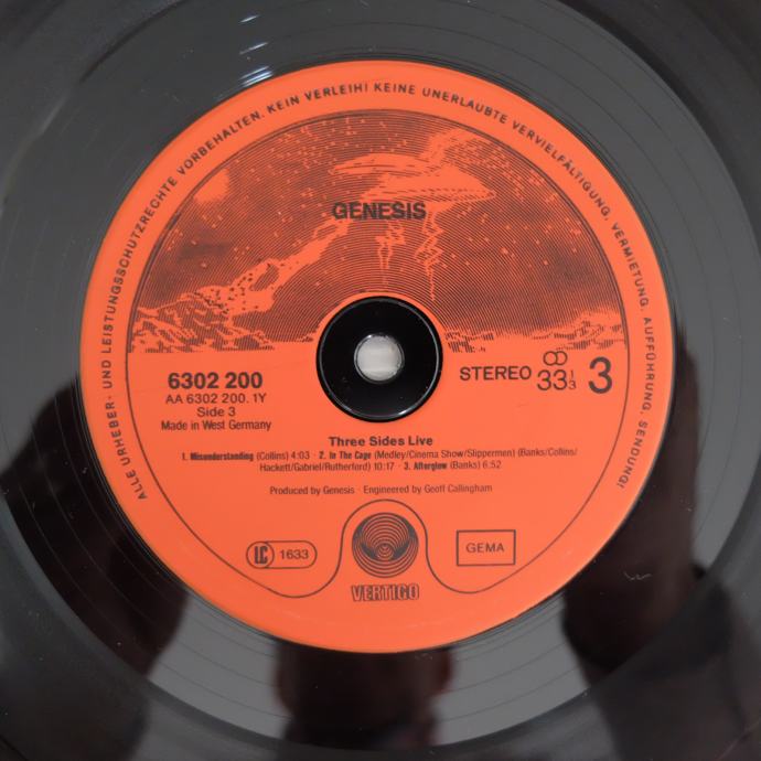 Prodajem gramofonsku LP ploču, dvostruki album Genesis – Three Sides Live