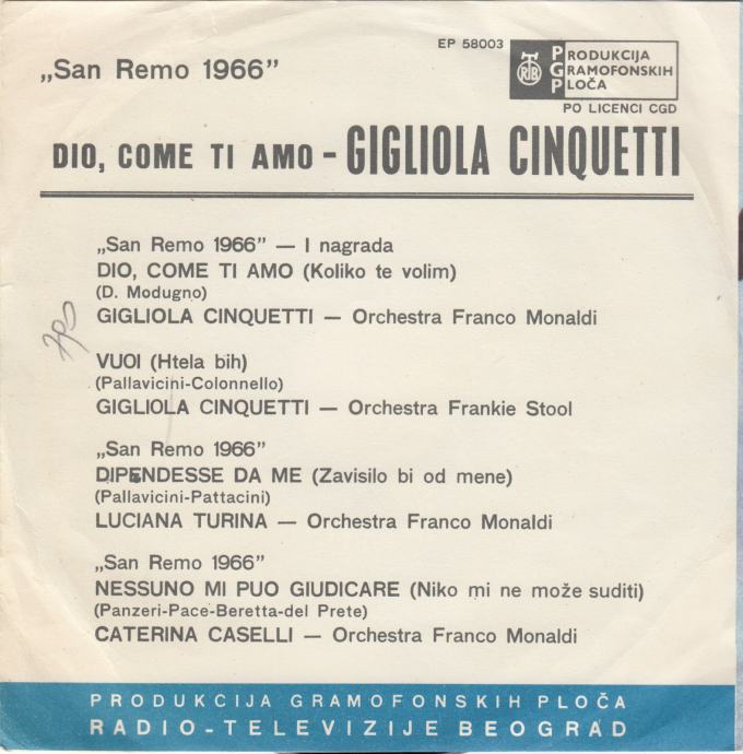 GIGLIOLA CINQUETTI DIO, COME TI AMO GRAMOFONSKA PLOČA