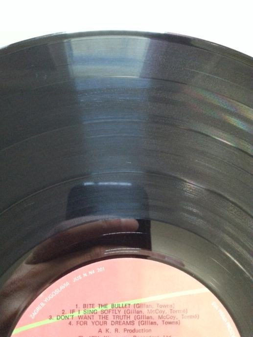 Ploča vizualno: Labeli su jako čisti i uredni, bez ikakvih tragova spindle weara te izgledaju kao novi.. Ploča ima odličan sjaj, nema nekih dubljih friževa. Temeljitim pregledom sam uočio da ploča ima više onih površinskih frižića koji ružno izgledaju ali se ne mogu opipati pod prstom. Vizualno ploča izgleda Vg očuvana.