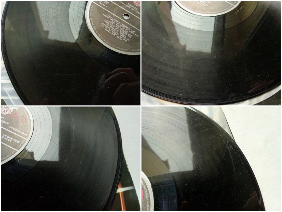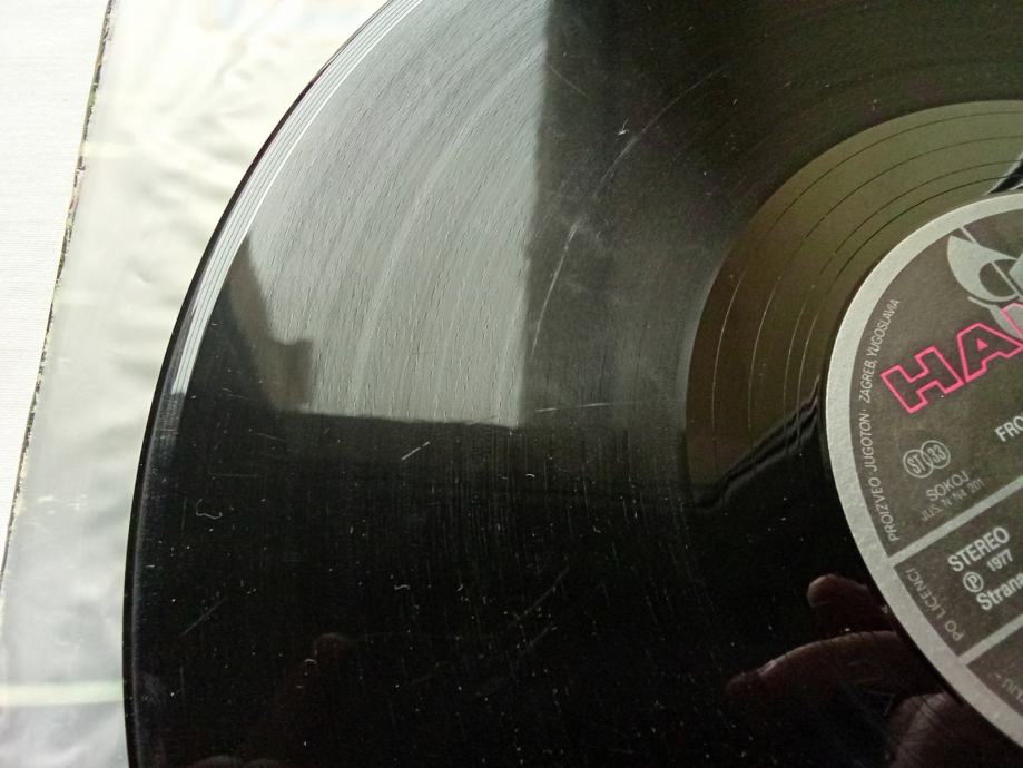 Pogledajte priložene fotografije oglašenog primjerka i YouTube video, koji sadrži iste fotografije veće razlučivosti i autentičnu snimku zvuka na početku prve strane ploče, napravljenu amaterskom opremom. Ploča je u potpunosti slušana neposredno prije oglašavanja, svira bez preskoka igle i stalno daje zvuk otprilike onakav kakav je u spomenutoj snimci, ovisno o kvaliteti opreme kojom se zvuk reproducira. Glede ogrebotina, postoje mnoge, neke su upadljive, ali sve su plitke i ne izazivaju značajno pucketanje. Uzdužna oštećenja brazdi su mjestimično vidljiva, nisu upadljiva, uzrokuju vrlo tiho pucketanje i zanemarivu distorziju zvuka. Rubovi omota nisu ni probijeni niti rascijepljeni.
