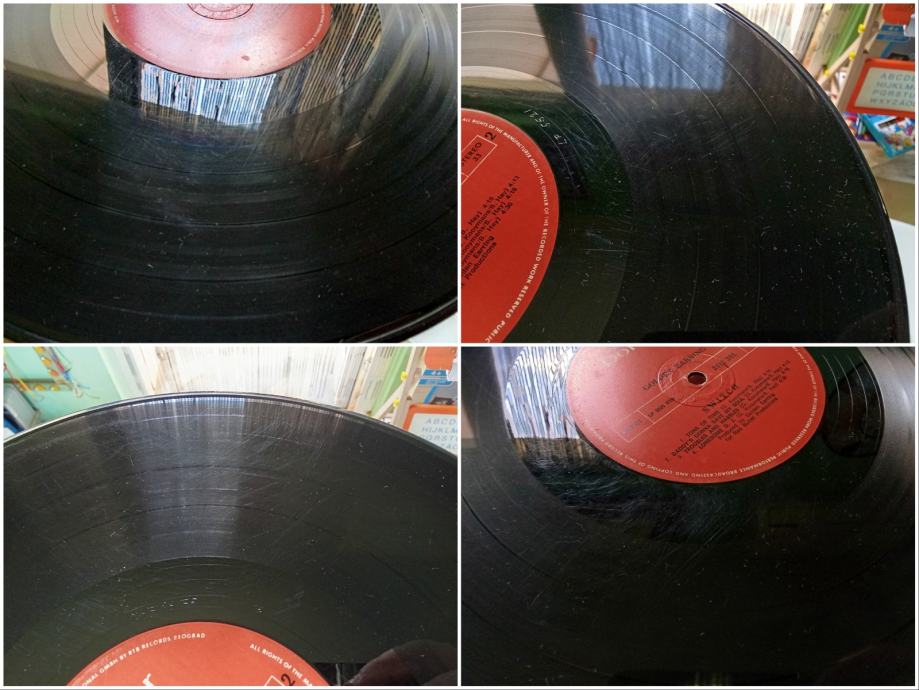 Pogledajte priložene fotografije oglašenog primjerka i YouTube video, koji sadrži iste fotografije veće razlučivosti i autentičnu snimku zvuka na početku prve strane ploče, napravljenu amaterskom opremom. Ploča je u potpunosti slušana neposredno prije oglašavanja, svira bez preskoka igle i stalno daje zvuk otprilike onakav kakav je u spomenutoj snimci, ovisno o kvaliteti opreme kojom se zvuk reproducira. Glede ogrebotina, postoje mnoge, ali sve su plitke i ne izazivaju pucketanje. Uzdužna oštećenja brazdi nisu upadljiva, uzrokuju vrlo tiho pucketanje i zanemarivu distorziju zvuka. Rubovi omota nisu probijeni.