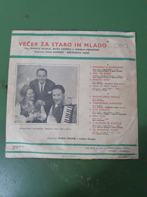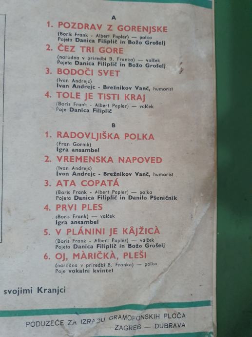 izvođača ansambla Boris Frank (večina pjesama) s svoim Kranjci, sudjeluju; Albert Papler, Božo Grošelj i Ivan Andrejc - Brežnikov Vanč, izdan 1966 god. Jugoton LPMY 671