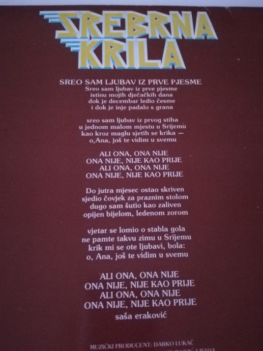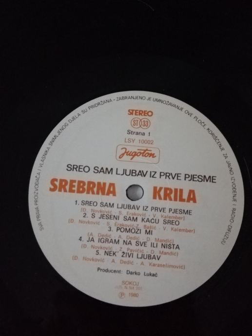 GRAMOFONSKA PLOČA LONG PLAY - SREBRNA KRILA - SREO SAM LJUBAV IZ PRVE PJESME