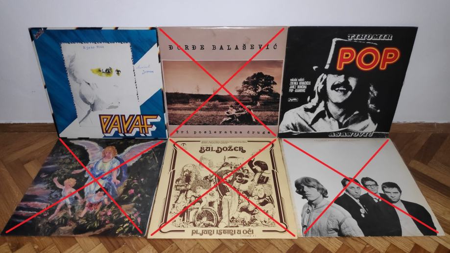 Prodajem ex-yu rock/pop gramofonske ploče. Kontakt na mail (borna.jug.2@gmail.com) ili mobitel. Polovina ploča je preslušana, a ostatak je vizualno ocijenjen pa ih na vaš zahtjev preslušavam, šaljem slike i detaljniji opis. Cijene i stanja su naznačeni pored svakog albuma. Na više ploča možemo dogovoriti i neki popust. Ocjene omot/ploča: