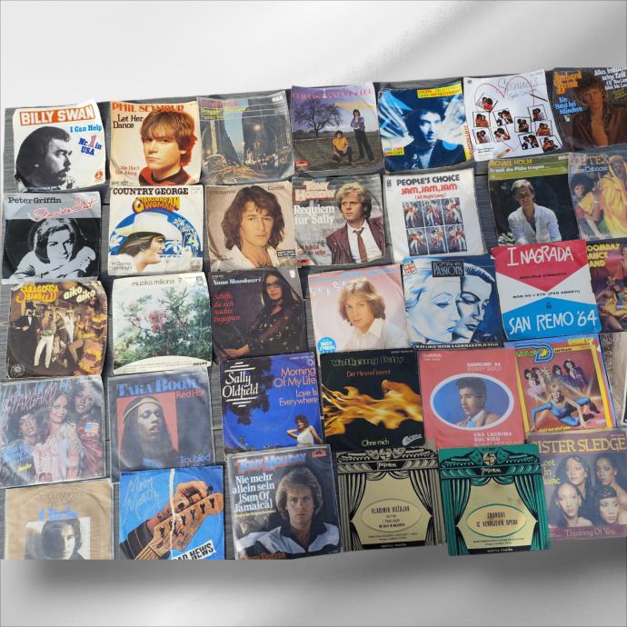 U ponudi je komplet od cca 250 ploča singlica promjera 7" (18 cm).