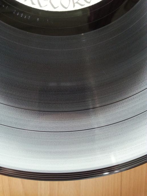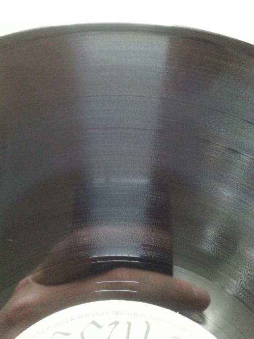 Ploča vizualno: Labeli su jako čisti i uredni, bez ikakvih tragova spindle weara te izgledaju kao novi. Ploča ima sjaj nove i djeluje jako čisto i uredno, nema nikakvih većih friževa. Temeljitim pregledom na direktnom svjetlu sam uočio tek nešto malo onih jedva vidljivih površinskih frižića ala dlaka kose (slike 10 i 16) koji jedva da se uopće i vide te nemaju nikakav utjecaj na zvuk. Vizualno ploča izgleda Ex očuvana.