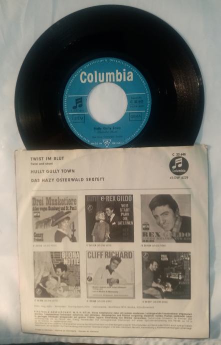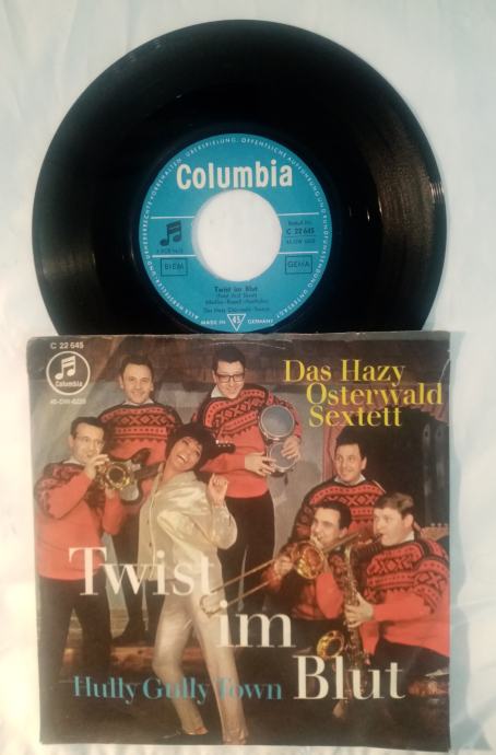 Hazy Osterwald Sextett – Twist Im Blut (Beatles - Twist And Shout) / Hully Gully Town 1964 Columbia – C 22 645 / 45-DW 6229. Ploča je u VG kondiciji, a očuvanost omota i etiketa vidljiva iz priloženih fotografija.