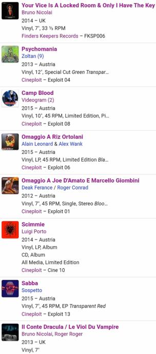 DEAK FERANCE / ROGER CONRAD – OMAGGIO A JOE D'AMATO E MARCELLO GIOMBINI (Limited Edition 7" EP 1st Pressing on Blood Red With Black Splatter Colored Vinyl + Inner) (Cineploit, Austria, 2012)