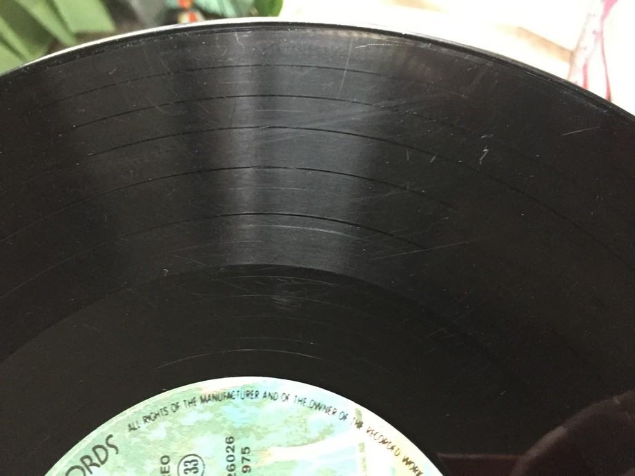 Pogledajte priložene fotografije oglašenog primjerka i YouTube video, koji sadrži iste fotografije veće razlučivosti i autentičnu snimku zvuka s početka prve strane, napravljenu amaterskom opremom. Ploča je u potpunosti poslušana, svira bez preskoka igle i daje zvuk otprilike onakav kakav je u spomenutoj snimci, ovisno o kvaliteti opreme kojom se zvuk reproducira. Glede ogrebotina, mnogo ih je, samo neke su utječu na zvuk na način da uzrokuju rijetko pucketanje. Svo tiho pucketanje, šum i jedva primjetna distorzija koji se čuju u snimci uzrokovani su uzdužnim oštećenjima u brazdama, koja su mjestimično upadljiva. Rubovi omota nisu probijeni. Ostalo o stanju oglašenog predmeta govore fotografije i video.