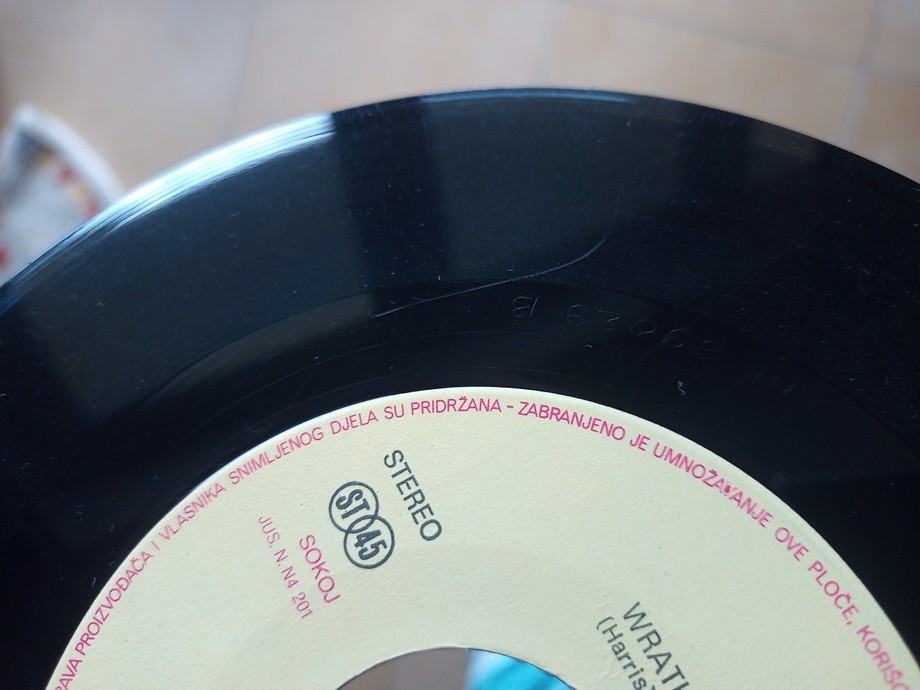 Pogledajte priložene fotografije oglašenog primjerka i YouTube video, koji sadrži iste fotografije veće razlučivosti i autentičnu snimku zvuka s početka prve strane, napravljenu amaterskom opremom. Ploča je u potpunosti poslušana, svira bez preskoka igle i stalno daje zvuk otprilike onakav kakav je u spomenutoj snimci, ovisno o kvaliteti opreme kojom se zvuk reproducira. Glede ogrebotina, neke su upadljive, ali sve su plitke i bezutjecajne na zvuk. Uzdužna oštećenja brazdi nisu upadljiva, uzrokuju pozadinski šum, tiho pucketanje i umjerenu distorziju zvuka. Ostalo o stanju oglašenog predmeta govore fotografije i video.