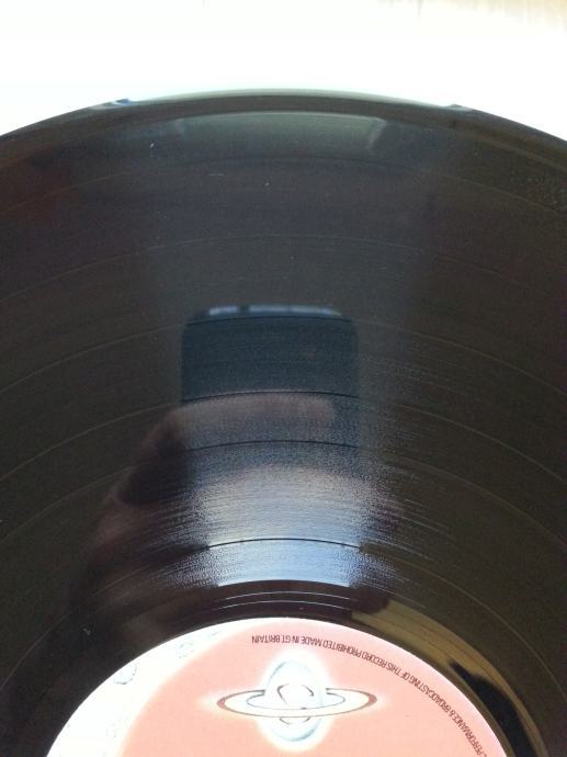 Ploča vizualno: Labeli su jako čisti i uredni, bez ikakvih tragova spindle weara. Ploča ima sjaj nove i djeluje jako čisto i uredno bez ikakvih dubljih friževa ili frižića. Tek temeljitim pregledom na jakom svjetlu sam uočio nešto onih najsitnijih crtica nastalih od vađenja iz kartonskog innera koje se u uvjetima normalne osvijetljenosti ni ne vide već samo kao refleksije na direktnom svjetlu, te ne utječu na samu reprodukciju. Vizualno ploča izgleda Ex očuvana.