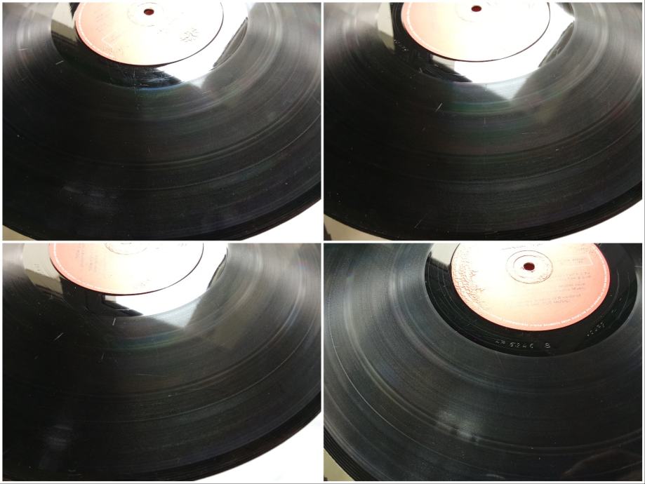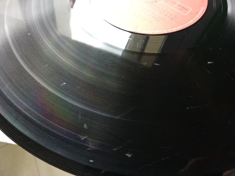 Pogledajte priložene fotografije oglašenog primjerka i YouTube video, koji sadrži iste fotografije veće razlučivosti i autentičnu snimku zvuka na početku prve strane ploče, napravljenu amaterskom opremom. Ploča je u potpunosti slušana neposredno prije oglašavanja, svira bez preskoka igle i stalno daje zvuk otprilike onakav kakav je u spomenutoj snimci, ovisno o kvaliteti opreme kojom se zvuk reproducira. Glede ogrebotina, postoje mnoge, neke su upadljive, ali sve su relativno plitke i ne izazivaju značajno pucketanje. Uzdužna oštećenja brazdi su mjestimično vidljiva, nisu upadljiva, uzrokuju vrlo tiho pucketanje i zanemarivu distorziju zvuka. Rubovi omota nisu ni probijeni niti rascijepljeni.
